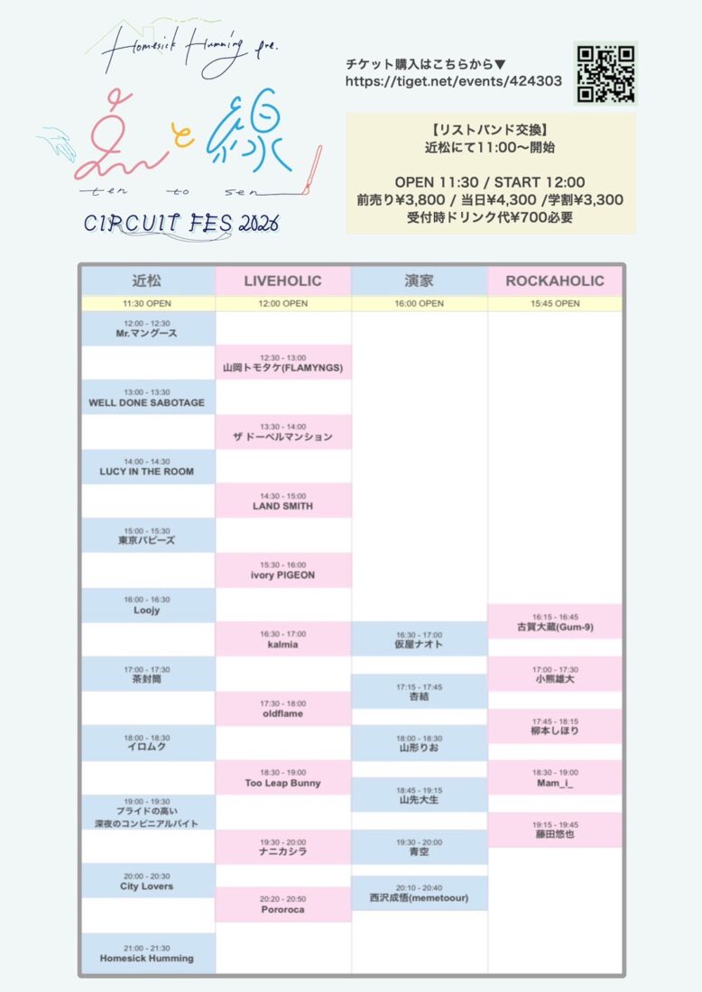 1/17(土) Homesick Humming pre.『点と線 circuit fes 2026』