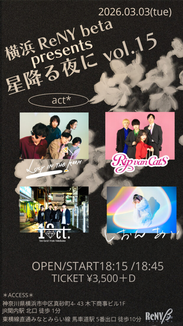 3/3(火) YOKOHAMA ReNY beta「星降る夜に vol.15」